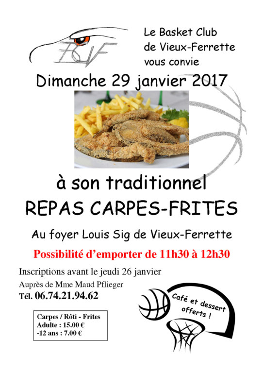 Dimanche 29 janvier nous organisons notre traditionnel repas Carpes-frites.