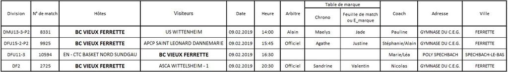 Planning de la table de marque du 9 février