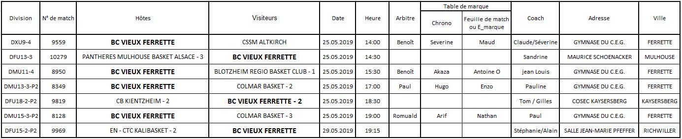Les matchs du 25 et 26 mai